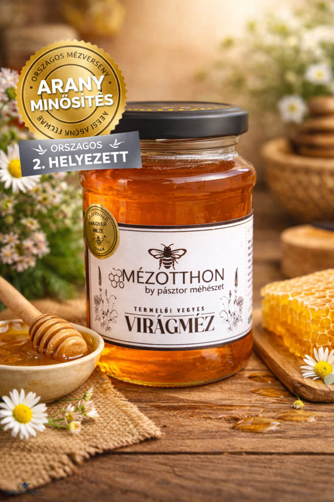 Ez a virágméz országos mézversenyen elért díjazásával is bizonyítja kiemelkedő minőségét – minden cseppje a gondos méhészi munka és a természet tisztaságának eredménye.